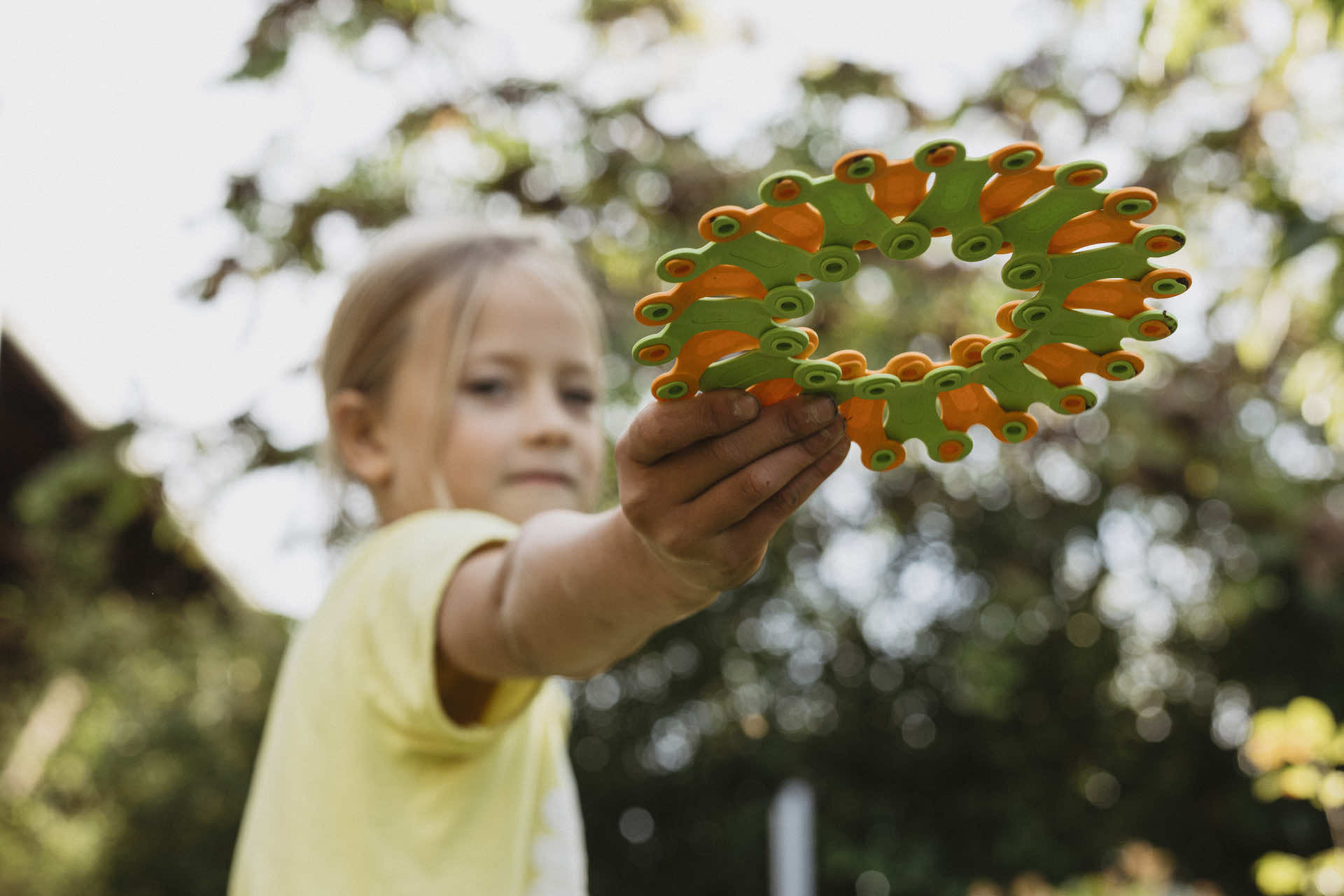 Zbuduj piłkę wielkości piłki nożnej, w którą fajnie się gra, lub zbuduj większe przedmioty, np. solidny dźwig lub grę w łapanie kubków dla 4 osób! Zestaw ten jest idealny dla dzieci w wieku od 4 lat, które chcą rozwijać swoje umiejętności konstrukcyjne i tworzyć własne światy do zabawy. Solidne i elastyczne elementy gwarantują długotrwałą zabawę, a jednocześnie rozwijają myślenie przestrzenne i zręczność.
