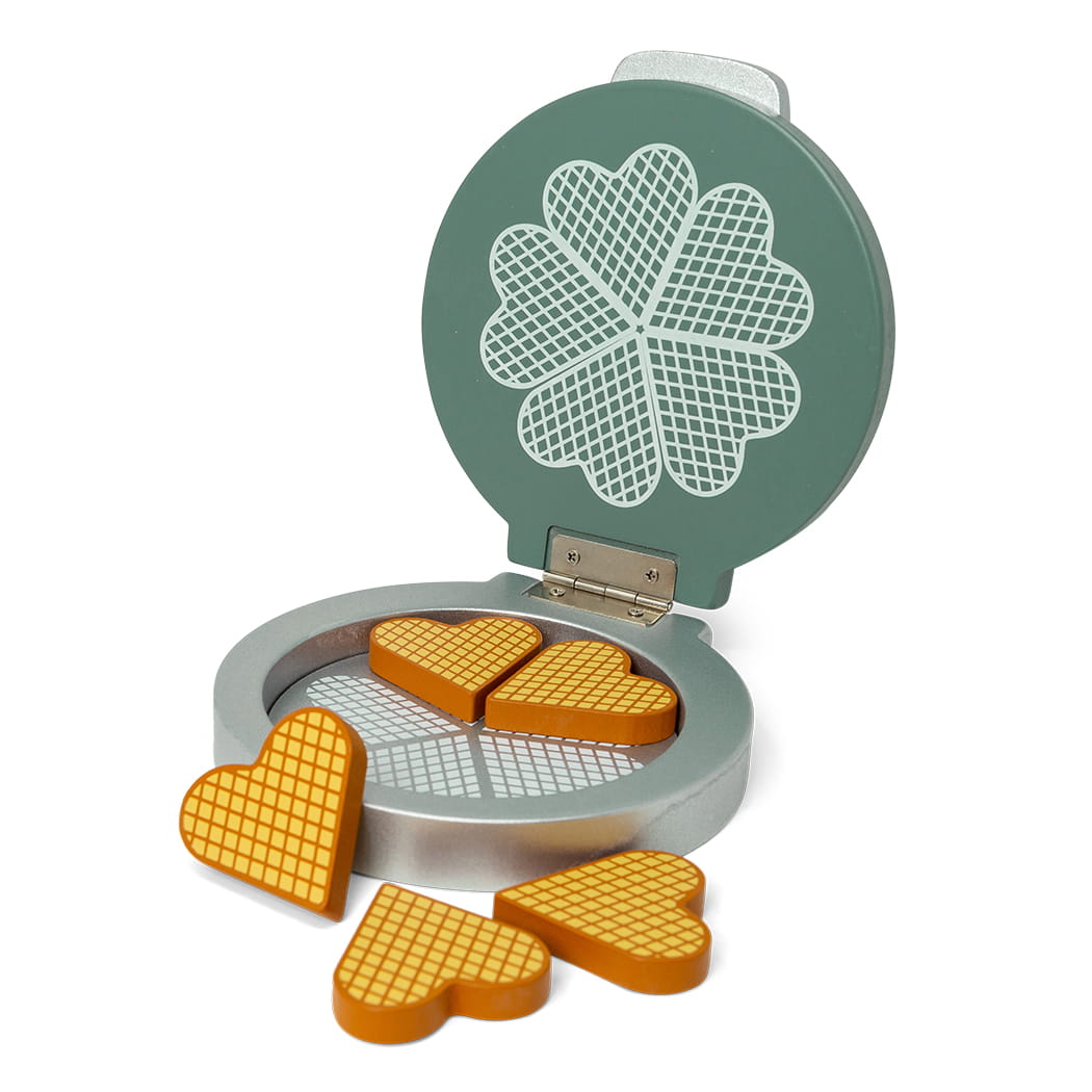 Dzieci mogą udawać, że robią przepięknie kruche gofry w kształcie serca i serwują je lalkom, pluszowym misiom czy mamie i tacie. To toruje drogę do wielu godzin odgrywania ról i zabawy.Na pokrywie znajduje się przycisk z odgłosem kliknięcia, a dzieci same mogą ustawić temperaturę dla idealnych gofrów.