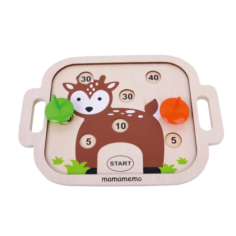 Drewniana prosta gra zręcznościowa dla dzieci, dzięki której mogą uczyć się nie tylko zdobywać punkty, ale także uczyć się dodawania liczb podczas zabawy! Zakręć swoim bączkiem i zdobądź jak najwięcej punktów.