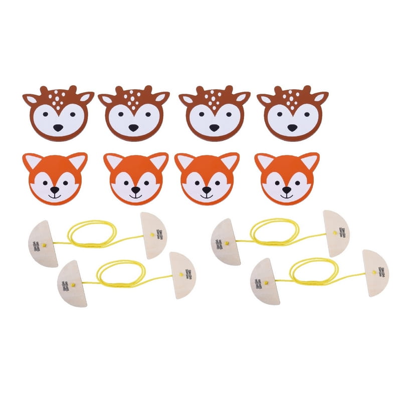 Zestaw zawiera 8 elementów układanki (4 lisy i 4 jelenie) + 4 sznurki do wyznaczania pola gry
