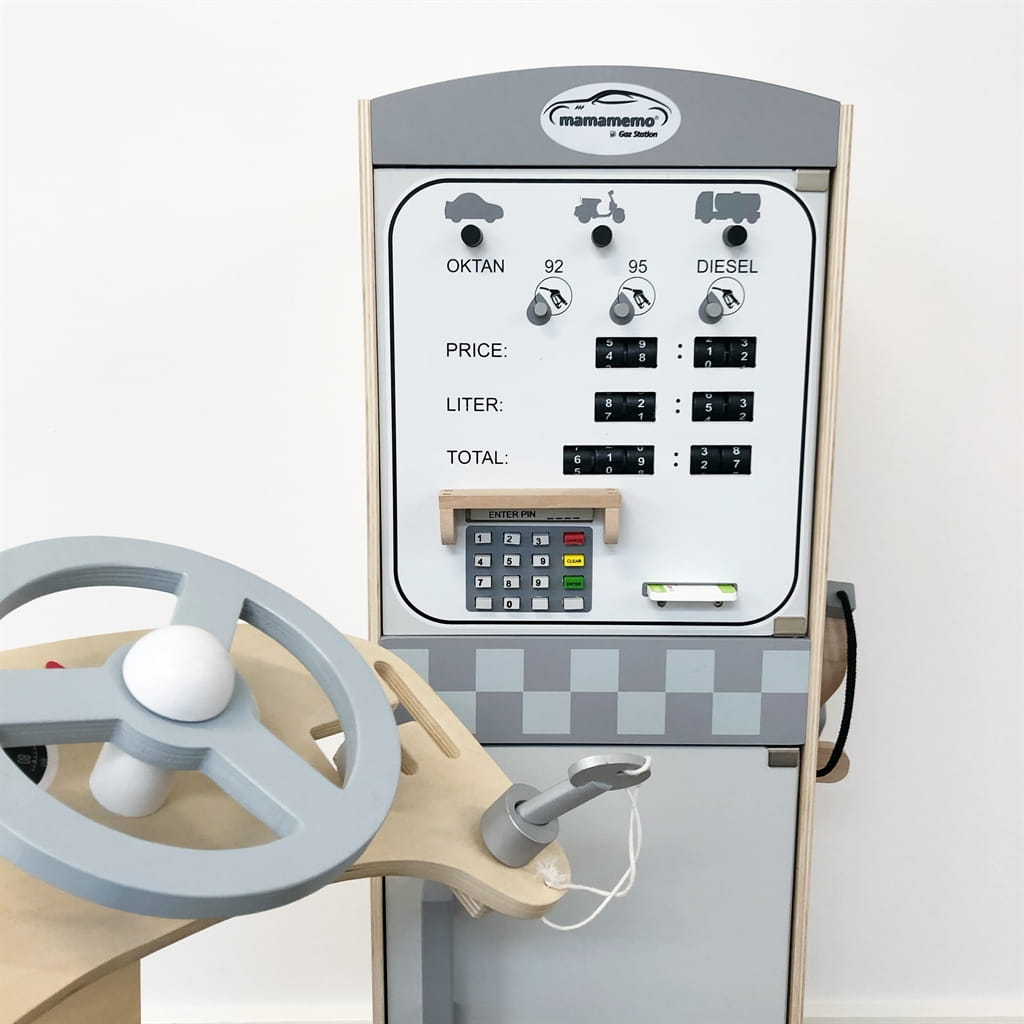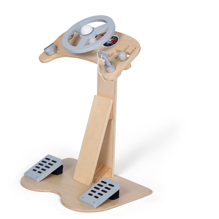 Drewniana kierownica dla każdego małego kierowcy w domu. Przekręć kluczy, aby uruchomić samochód i w drogę przygodo! Kierownica posiada ruchomy wskaźnik poziomu paliwa i prędkościomierz oraz dźwięk kliknięcia przy włączaniu przycisku do świateł.