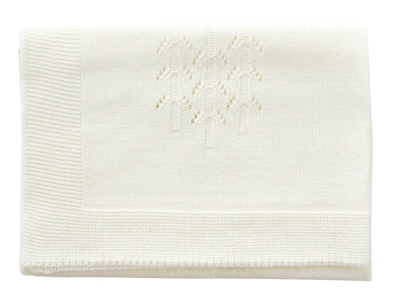 Ten dzianinowy koc z serii by ASTRAP® ma piękny wzór oczek; idealnie pasuje do łóżeczka i wózka dla lalek z tej samej serii.