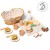 W zestawie dywanik piknikowy, który pasuje do kosza piknikowego i pięknej drewnianej zastawy stołowej. Pokarm dla zabawek jest montowany na rzep.
