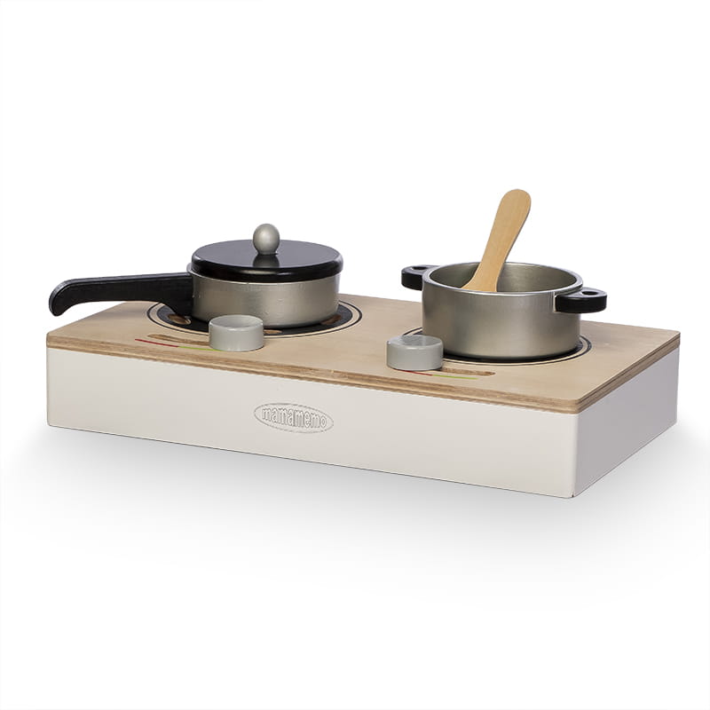 Ładna drewniana płyta kuchenna z 2 palnikami, idealna dla małego szefa kuchni. Można go również ładnie zestawiać z innymi urządzeniami kuchennymi firmy MaMaMeMo, dostępnymi na naszej stronie. Spróbuj ustawić go na piekarniku i masz kompletną kuchenkę.
