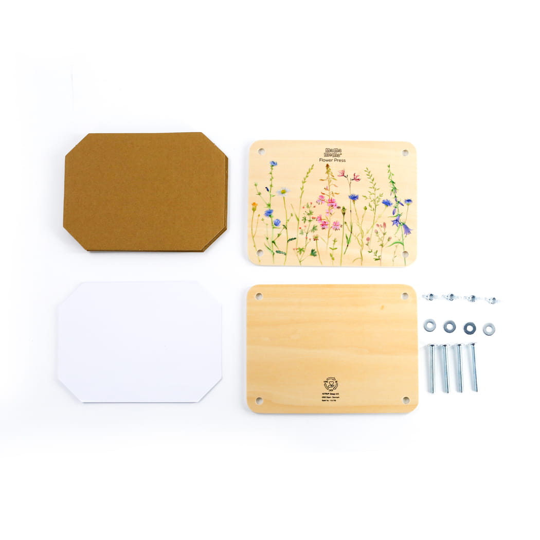 Prasa do kwiatów ma wymiary 20 x 15 cm i jest dostarczana z kilkoma kawałkami kartonu, dzięki czemu można jednocześnie prasować kilka warstw kwiatów. Ma solidne metalowe śruby, dzięki czemu można go łatwo dostosować do liczby warstw kwiatów, które chcesz prasować.