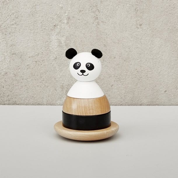 Niezwykle urocza drewniana wieża do układania Panda, stanowiąca dodatkowe wyzwanie dla bardzo małych dzieci.