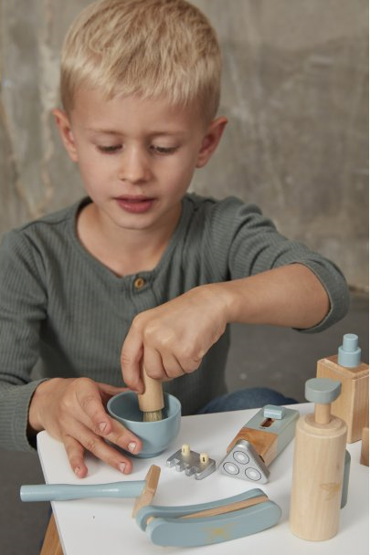 Zestaw zawiera również wystarczająco dużo elementów, aby założyć mały salon fryzjerski. Twoja rodzina i przyjaciele mogą umówić się na wizytę w celu uzyskania zupełnie nowej fryzury lub przycięcia brody.