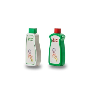 Zestaw mydła MaMaMeMo z 2 butelkami to idealny dodatek do zestawu pralko-suszarki, do sklepu spożywczego lub do użycia jako środek do zmywania naczyń w zabawnej kuchni. Pokrywy można odkręcić.